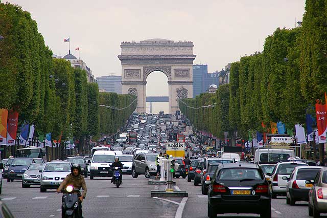 For those of you who have never been to Paris, I found a picture on the web of the Champs Elysees. In the foreground, is an example of one of the medians that Thomas ran over. |